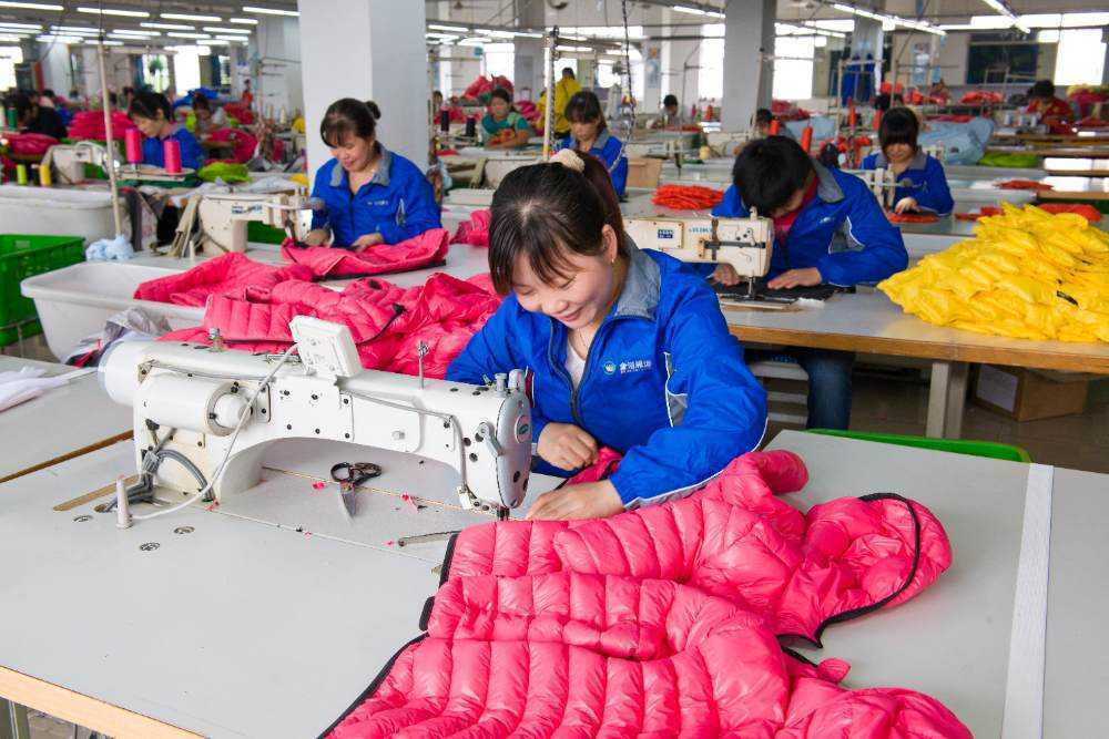 充绒是将羽绒填充到羽绒服的各个部分,这一步骤对羽绒服的保暖性能至关重要。充绒时需要控制好羽绒的分布,确保每部分的保暖效果均匀。