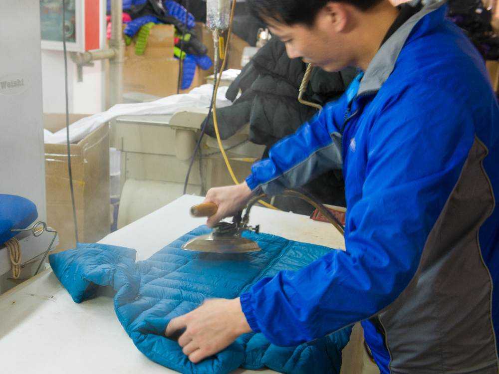 整烫是对缝纫完成后的羽绒服进行熨烫,以消除缝纫过程中产生的皱褶,使羽绒服的外观更加平整和美观。整烫过程中需要控制好温度,避免损伤面料。